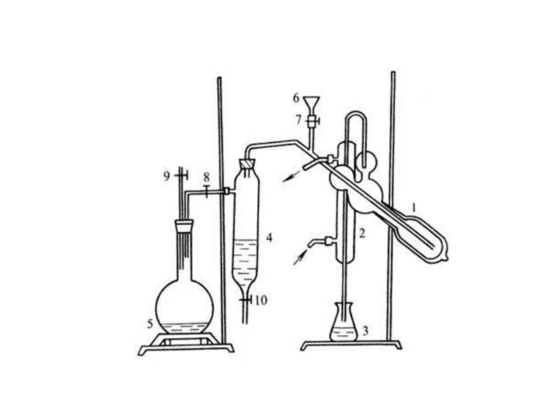 9) 吸收液也可以用0.01當量的酸代表硼酸,過剩的酸液用0.01N堿液滴定,計算時,A為試劑空白消耗堿液數(shù),B為樣品消耗堿液數(shù),N為堿液濃度,其余均相同。