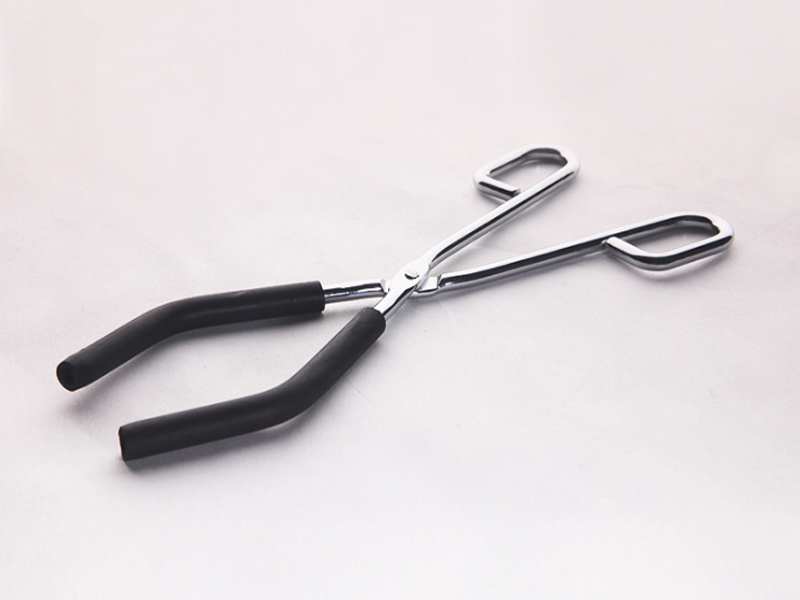 燒杯夾專用于夾取受熱的燒杯,表面鍍有鎳、鉻的鋼制品,頭部套有橡膠管套。