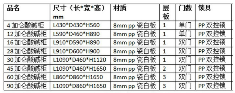 1.柜體采用抗強酸堿化學藥品、耐沖擊瓷白色PP板,厚度8-12mm。