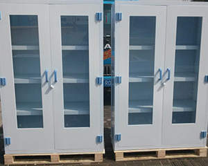 1.柜體采用抗強酸堿化學藥品、耐沖擊瓷白色PP板,厚度8-12mm。